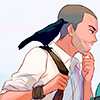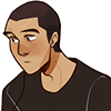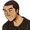 - black hair and a 5 o clock shadow